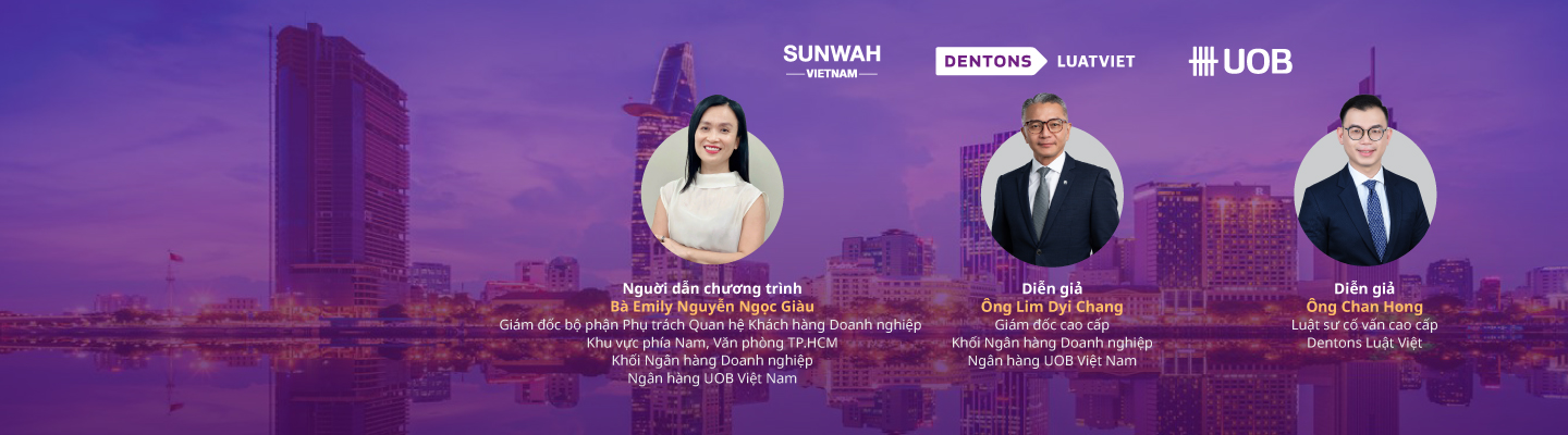 Tương tác với các chuyên gia giàu kinh nghiệm từ Ngân hàng UOB Việt Nam và Dentons LuatViet, họ sẽ chia sẻ kiến thức và trả lời các câu hỏi của bạn.