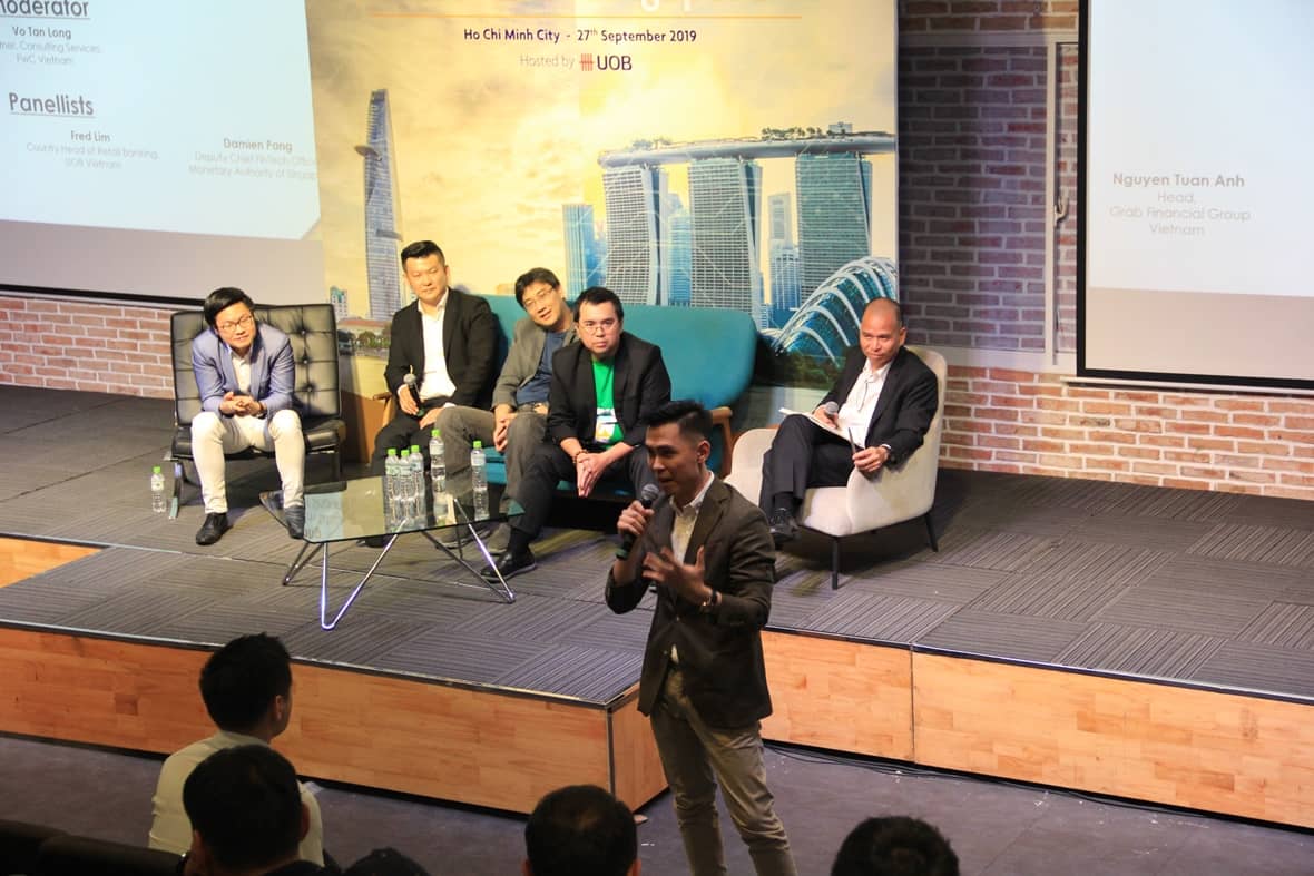 The ‘FinTech Opportunities in ASEAN’ panel led by moderator Vo Tan Long (PwC), Mr Tuan Anh Nguyen (Head of Grab Financial Group Vietnam), Mr Damien Pang (Deputy Chief FinTech Officer, MAS), Mr Fred Lim (Country Head of Retail Banking, UOB Vietnam), and Mr Jian Min Sim (CEO and Cofounder, SourceSage)