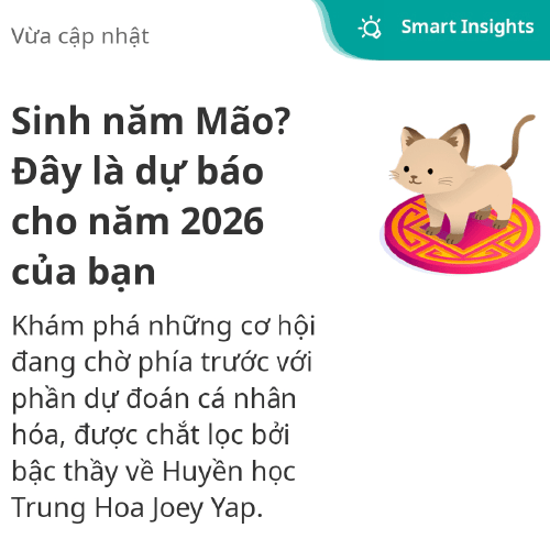 ![]() Xem ngay dự đoán năm 2026 độc quyền từ Joey Yap – Chuyên gia Phong thủy và Huyền học hàng đầu thế giới. Điều gì đang chờ đợi bạn ở năm mới? Mở UOB TMRW Vietnam và nhận thông điệp dành riêng cho bạn ngay tại Trang chủ Ứng dụng!